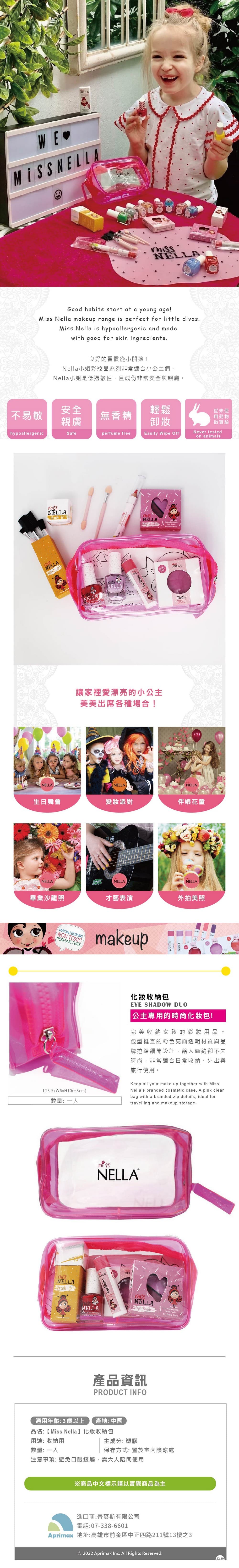 ★ 完美收納女孩們的彩妝用品★ 包型挺直,適合日常收納、外出與旅行使用★ 亮面透明材質,給人簡約卻不失時尚★ Miss Nella 品牌拉鍊細節設計